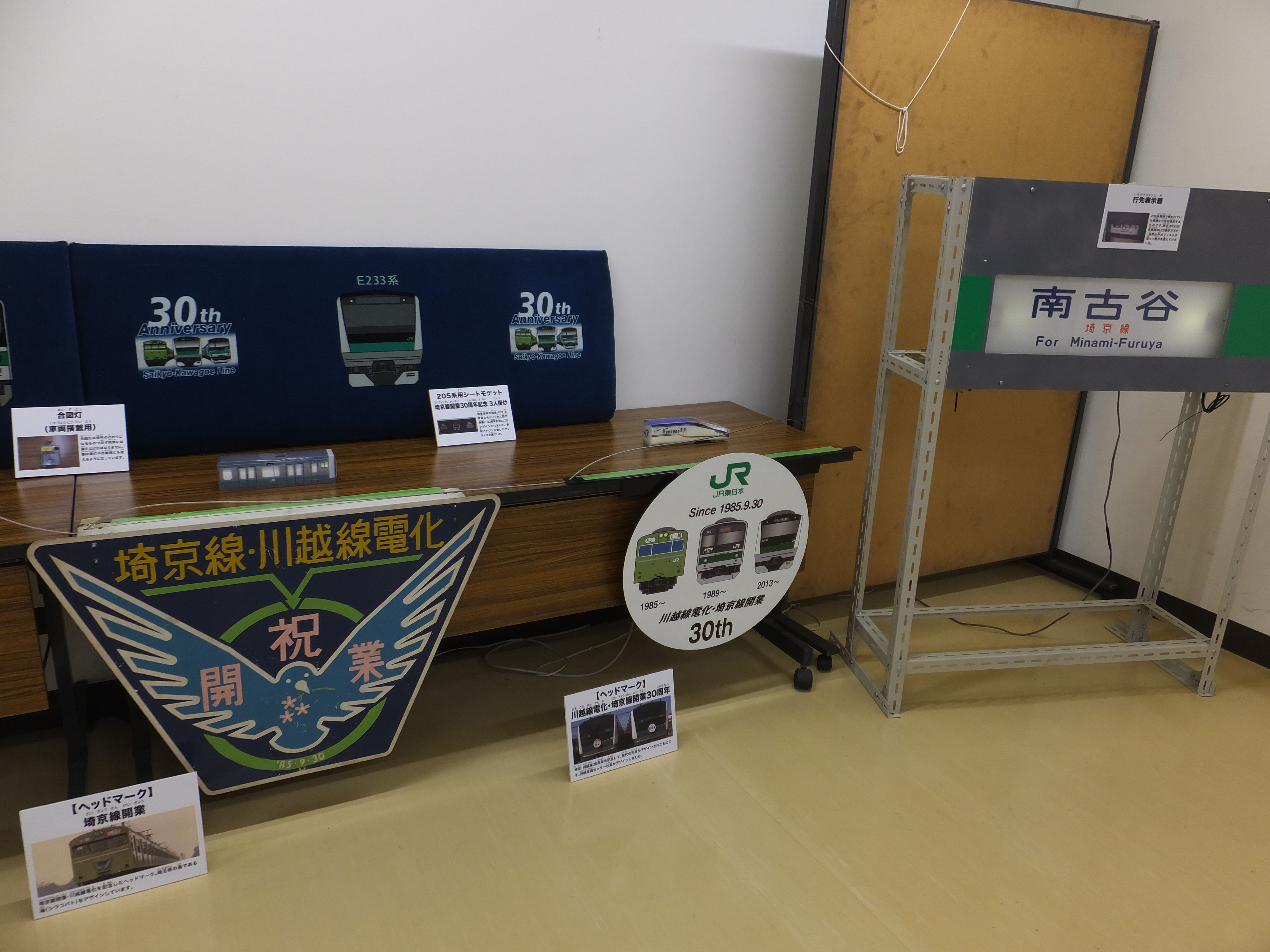 入ると埼京線川越線のヘッドマークが並べられています。ありがとう205系を見るのはこれで何回目でしょうか。
