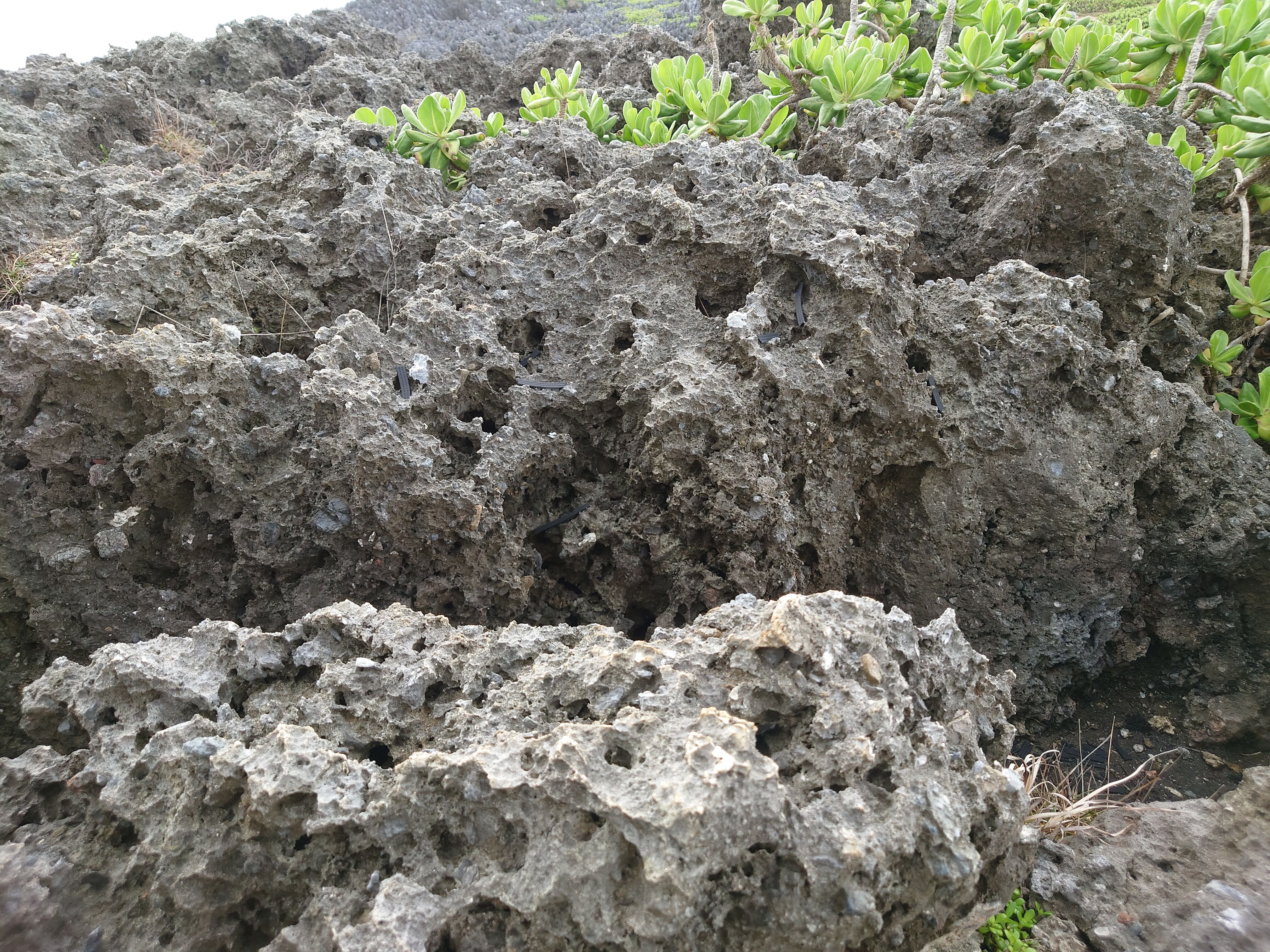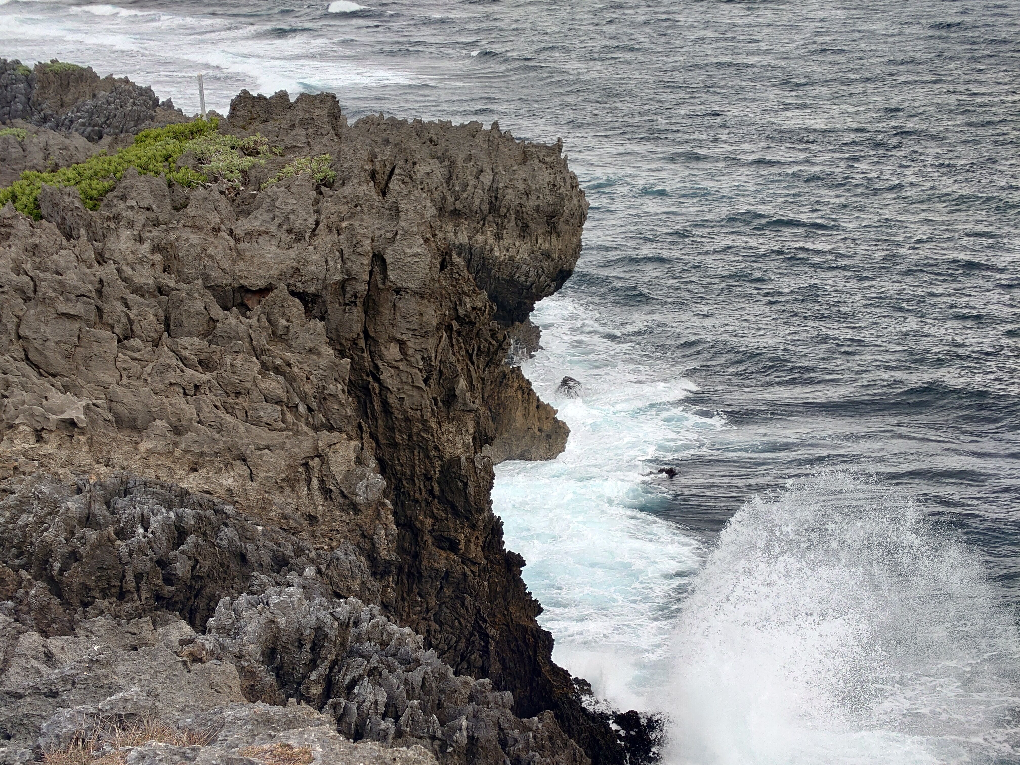 岬は全体的に岩場のうえにあり、溶岩が固まってできたような穴がたくさんあります。